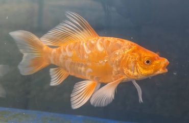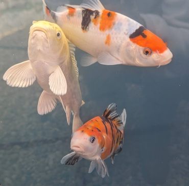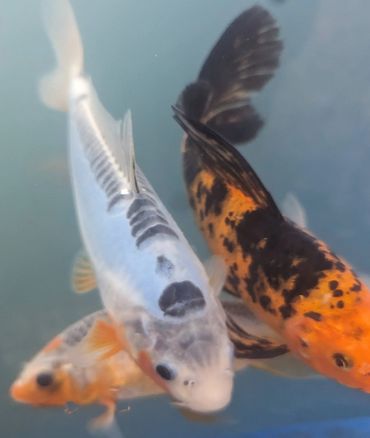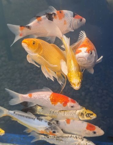 We stock standard and longfin (butterfly) koi larger than what you might find at a big box pet store. They are all hand picked and nurtured, we work with them daily, hand feeding and desensitizing them to human contact.